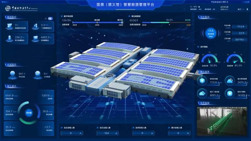京能国际北京顺义国展低碳智慧能源升级改造项目位于中国国际展览中心(顺义馆),通过集成分布式光伏、空气源热泵及智慧能源管理等先进技术,构建起多能互补的能源供给体系,实现了场馆用能系统的全链条优化升级。自2025年10月投产以来,依托智慧化控制系统,项目节能率持续保持在40%左右,单日最高节能率达53%,每年可减少二氧化碳排放量约0.8万吨。
