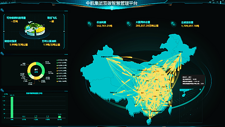 中国航空集团有限公司打造双碳智慧管理平台,构建了数字化碳排放核心管理工具,实现了对碳排放数据管理、核查、碳资产与碳抵消的全流程管控。平台适配多套国内外碳管理体系,为行业提供了可复制的解决方案。通过每月追踪碳减排指标推送至运控中心等单位,平台有效指导了燃油效率控制。借助机队更新、航线优化及运行节油等措施,累计节油约42.5万吨,相当于减少碳排放133.9万吨。
