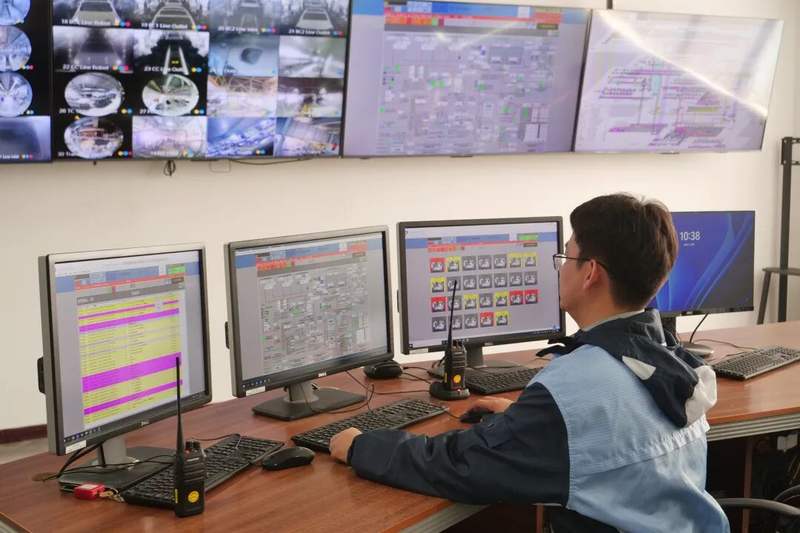 工作人员查看双碳智慧管理平台。