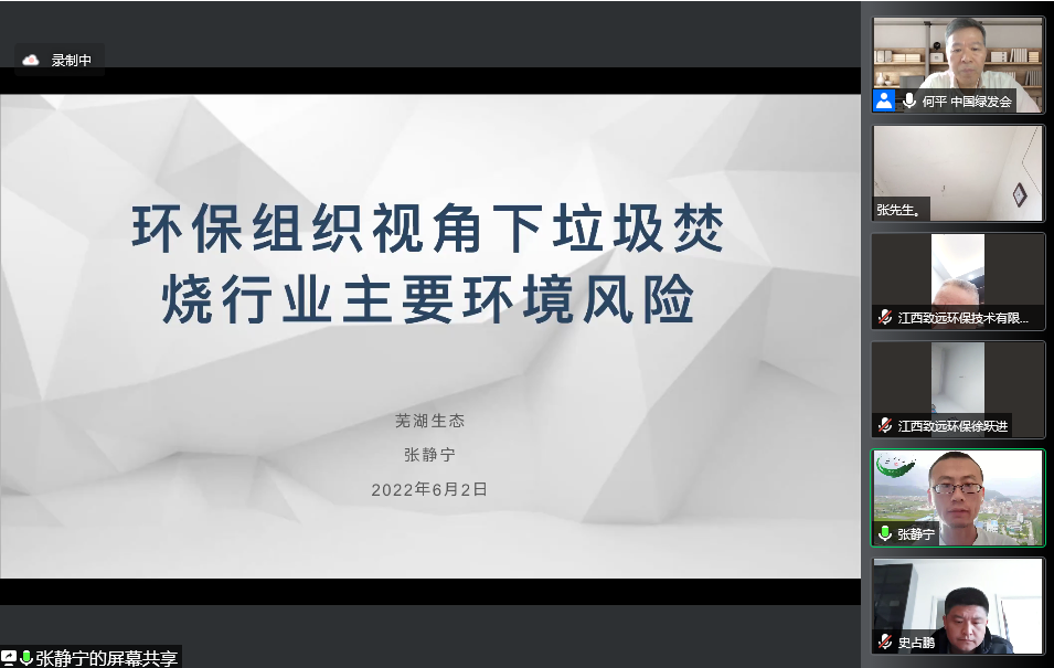 6月2日上午,中国绿发会大气治理与低碳发展工作委员会举办了“生活垃圾焚烧污染深层问题与治理”线上讨论会,探讨厘清生活垃圾焚烧发电存在的深层次问题,推动生活垃圾焚烧污染物治理。芜湖市生态环境保护志愿者协会项目总监张静宁以环保组织的视角谈垃圾焚烧行业面临的主要风险。现将发言内容分享如下: