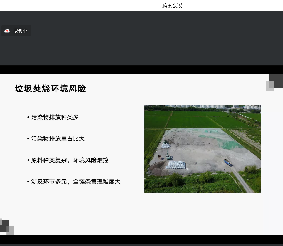 近年来,垃圾焚烧规模增速很快,刚刚几位老师也提到了这点。我想再谈一谈环境风险这个方面,从第三方组织所看到的,各方主体对于环境风险的管控情况。目前,存在两个新情况。一个是生活垃圾开挖焚烧,另外一个是碳排放,也就是气候变化,这是与之相关的议题。总体来说,我们可以看到,这两年的政策是逐步趋严的。对于垃圾焚烧行业的整体环境监管的管控也是逐步趋严的。整个过程当中,从第三方环保组织的角度来说的话,也是一直在参与其中,去协助提出一些建议,然后做了一系列相关的工作。